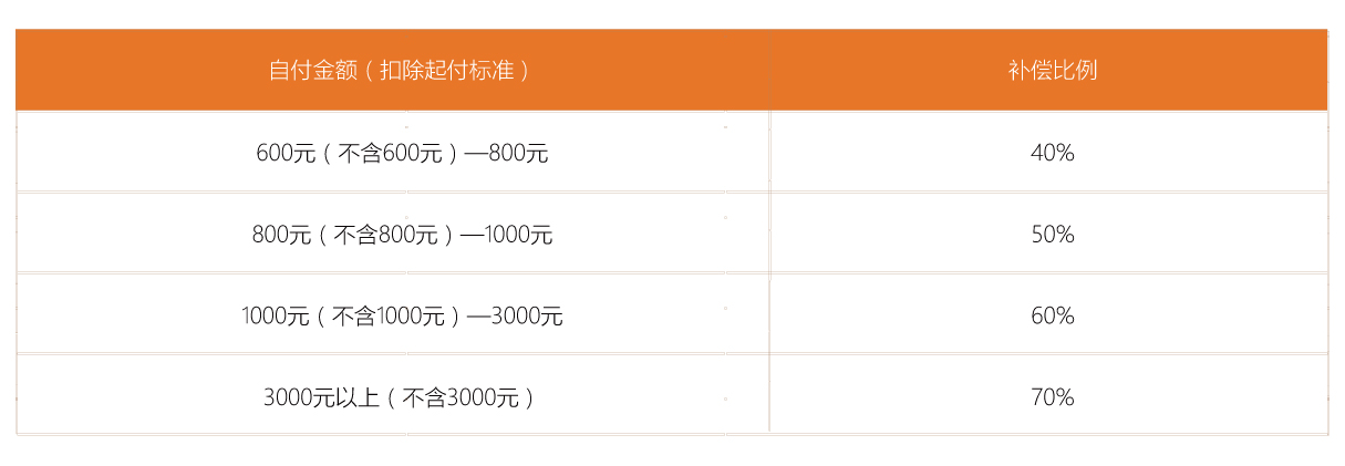 3.补偿范围:参保人员发生的符合基本医疗保险规定的住院费用、门(急)诊抢救费用,在城镇职工基本医疗保险统筹基金年最高支付限额阶段内,符合基本医疗保险统筹基金支付范围的个人按规定比例自付部分(不含起付标准),超过600元以上(不含600元)的医疗费用。